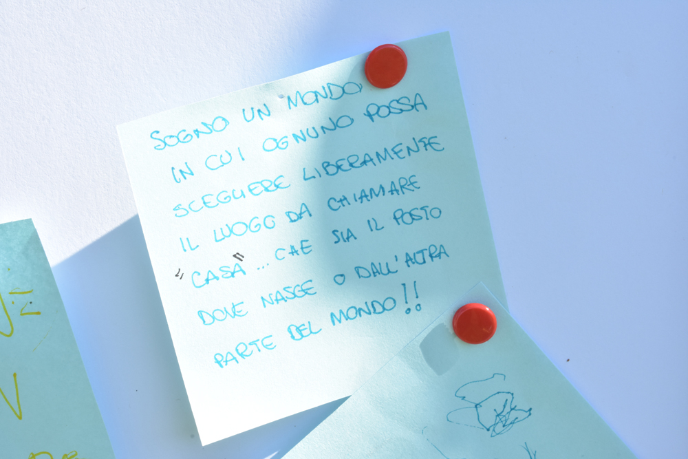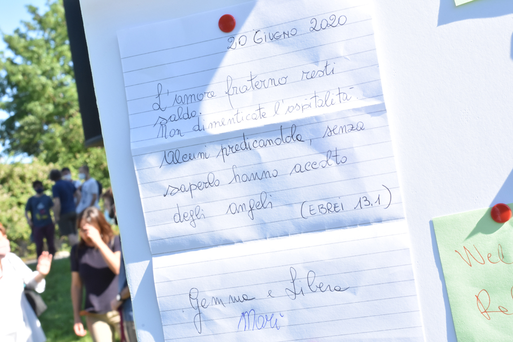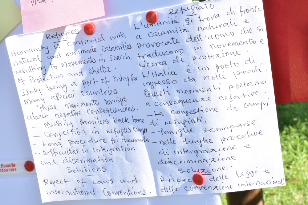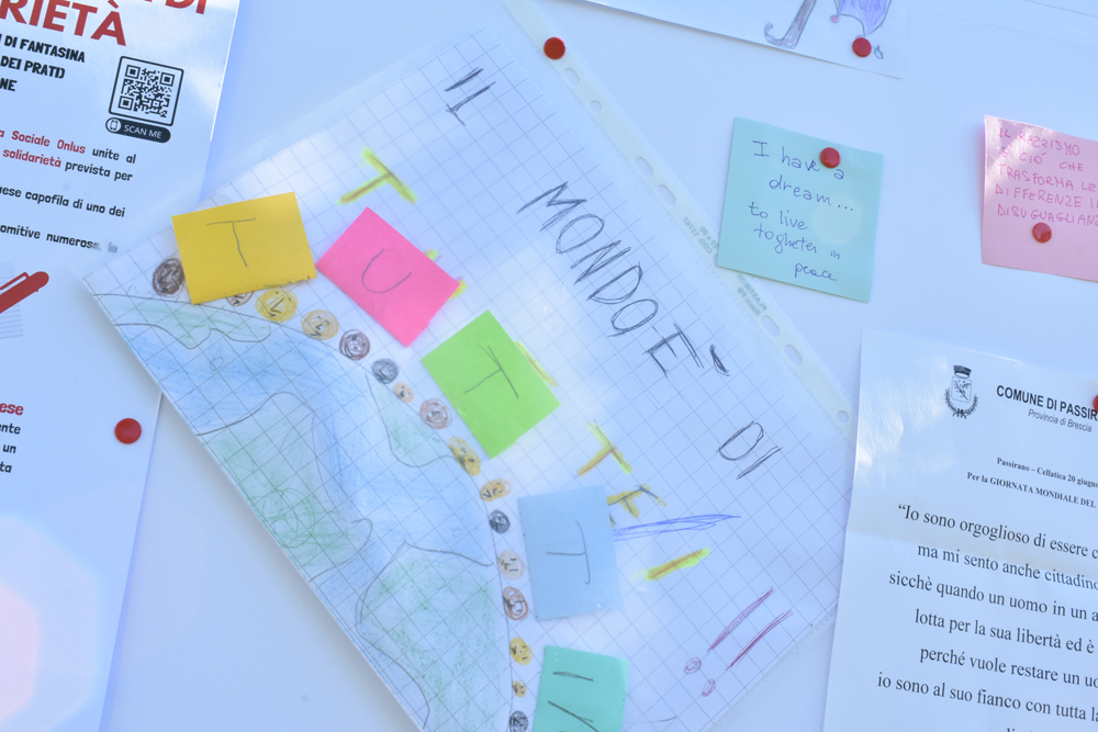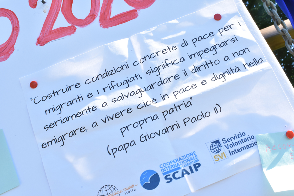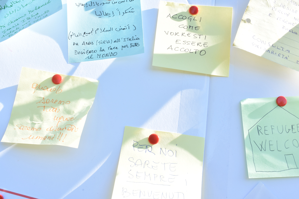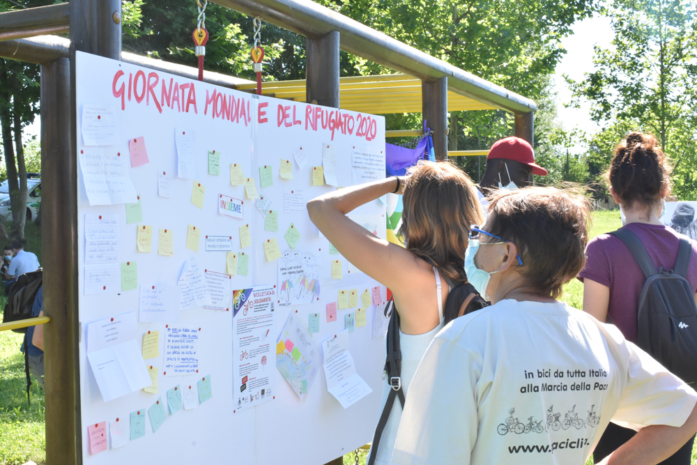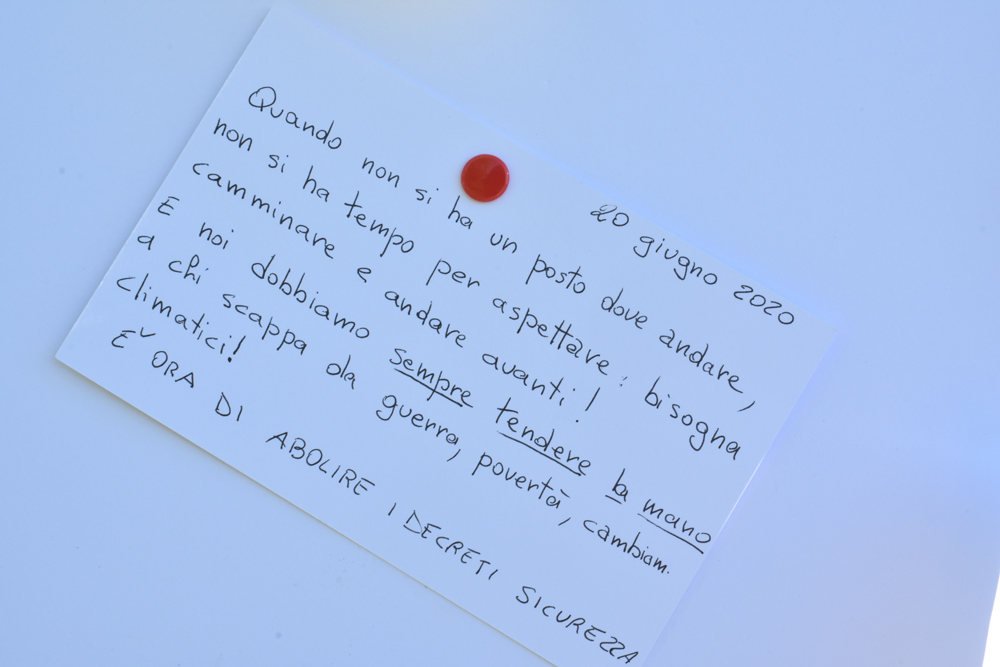 Per chi parte da un altro paese, ogni persona è ugualmente invitata a portare simbolicamente alla meta stabilita un biglietto, sul quale scrivere un pensiero riferito alla Giornata Mondiale del Rifugiato.