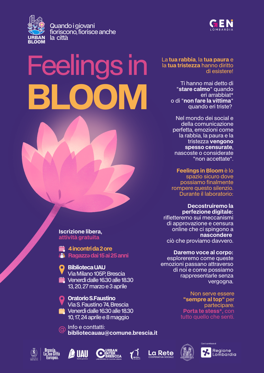 Dove: Biblioteca UAU e Oratorio S.Faustino, Brescia. Chi: Ragazzi e ragazze dai 15 ai 26 anni. Durata: 4 incontri di 2 ore ciascuno.