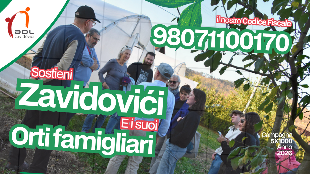 Se non hai Pay Pal o non vuoi procedere via carta di credito puoi effettuare un bonifico bancario sul sul C/C bancario presso Banca Popolare Etica IBAN IT95 Y050 1811 2000 0001 1019 353 intestato a ADL a Zavidovici Società Cooperativa Sociale indicando come causale “Erogazione liberale”.
